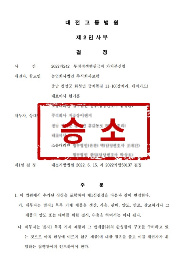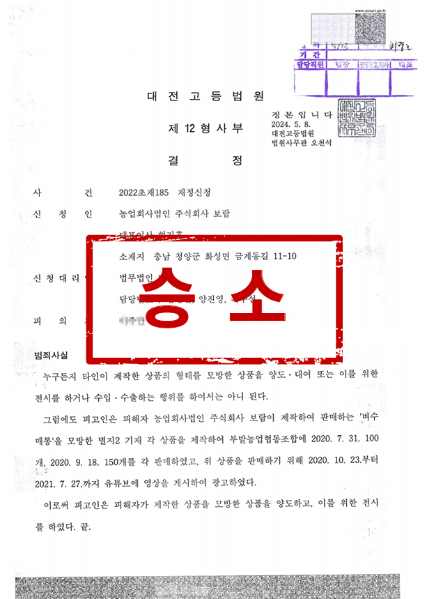 법원은 이미 수 차례에 걸쳐 보람의 벼수매통이 상당한 투자나 노력으로 만들어진 성과이며 누구나 자유롭게 이용할 수 있는 공공영역에 속하지 않는다고 판단한 바 있습니다.